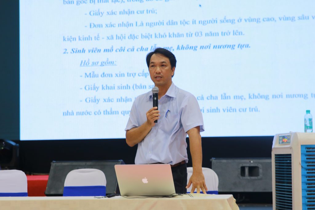 Tiếp nối chương trình, ThS. Nguyễn Đắc Thịnh – Trưởng phòng Công tác Sinh viên, Phục vụ cộng đồng đã triển khai các nội dung trọng tâm liên quan trực tiếp đến quyền lợi, nghĩa vụ và trách nhiệm của sinh viên trong năm học mới.