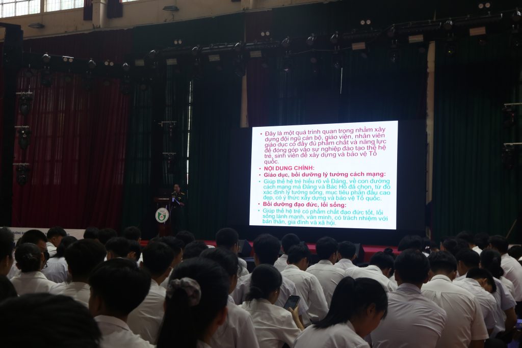 Chuyên đề do Đại tá Nguyễn Nhứt – Báo cáo viên Ban Tuyên giáo Trung ương trình bày, tập trung làm rõ vai trò của việc bồi dưỡng lý luận cách mạng cho sinh viên trong giai đoạn hiện nay. Qua đó, sinh viên được củng cố nhận thức về lịch sử đấu tranh của dân tộc, hệ giá trị cốt lõi của Đảng và Nhà nước, hình thành niềm tin vững chắc, động lực đúng đắn trong học tập và rèn luyện.