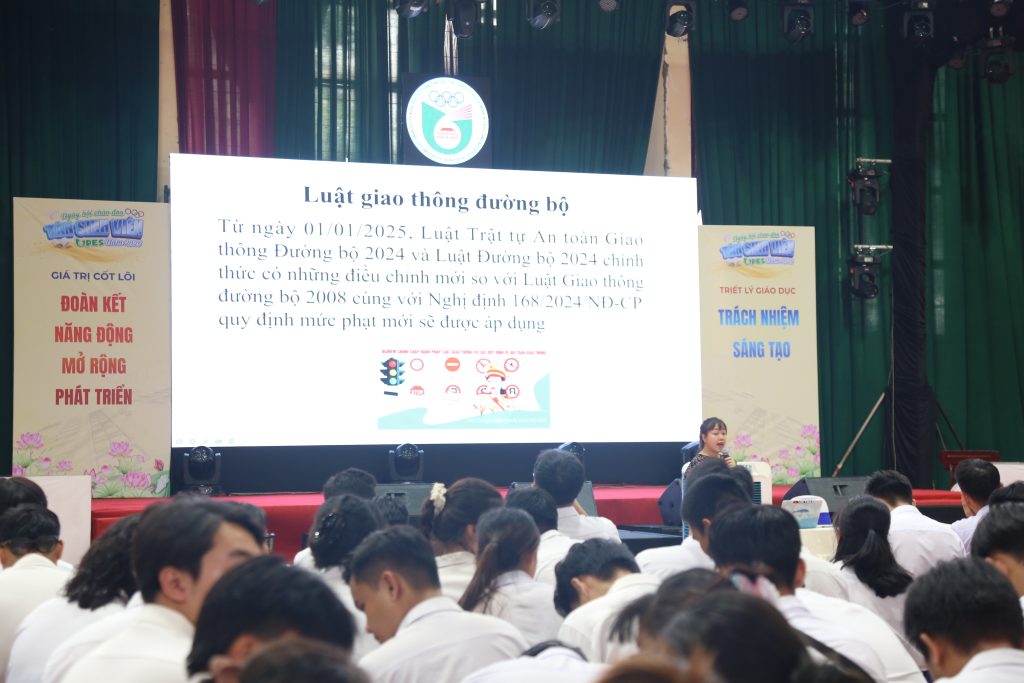 Tiếp nối chương trình, chuyên đề số 7 do ThS. Lê Hồng Thạch Thảo – Giảng viên Khoa Đại cương – Y sinh trình bày đã tập trung tuyên truyền, phổ biến các quy định pháp luật liên quan trực tiếp đến học sinh, sinh viên, bao gồm Luật Giáo dục năm 2019, Luật Giao thông đường bộ và Luật Phòng, chống ma túy năm 2021. Nội dung chuyên đề nhấn mạnh việc nâng cao ý thức chấp hành pháp luật, xây dựng nếp sống văn minh học đường, bảo đảm an toàn giao thông và kiên quyết phòng, chống ma túy trong môi trường giáo dục.