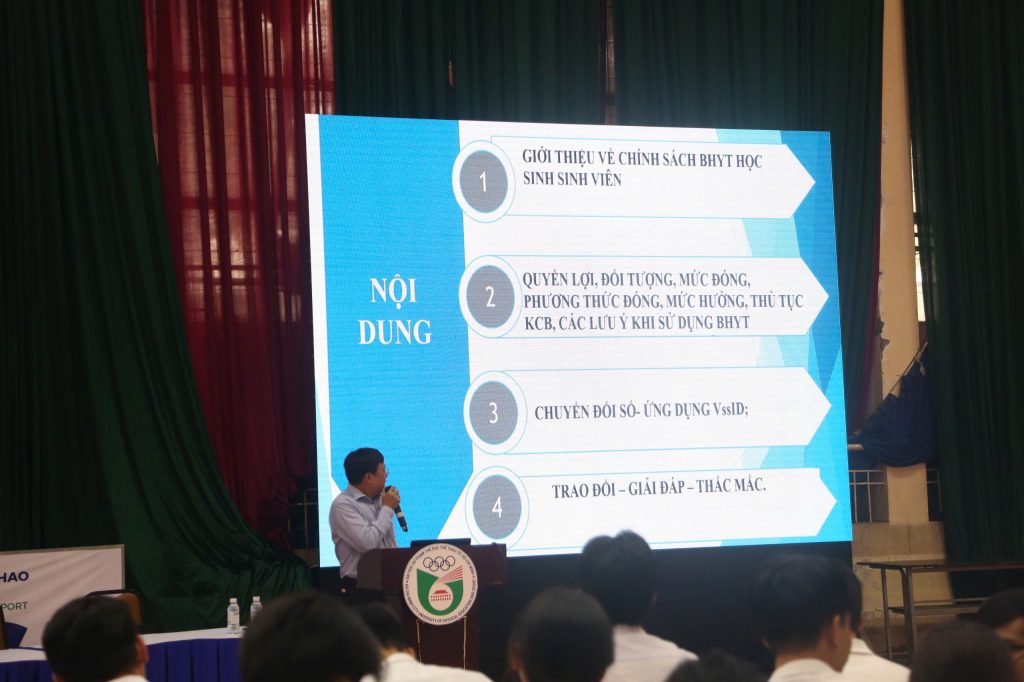 Tại buổi sinh hoạt, người tham dự được cung cấp đầy đủ thông tin về mức đóng, phương thức tham gia, quyền lợi khám chữa bệnh đúng tuyến, trái tuyến và các chính sách hỗ trợ đối với sinh viên có hoàn cảnh khó khăn. Chuyên đề đồng thời giới thiệu các tiện ích nổi bật của ứng dụng VssID – BHXH số, giúp sinh viên chủ động tra cứu quá trình tham gia BHYT, sử dụng thẻ BHYT điện tử, theo dõi lịch sử khám chữa bệnh và tiếp cận nhanh chóng các thông tin an sinh xã hội.